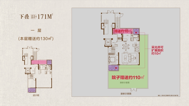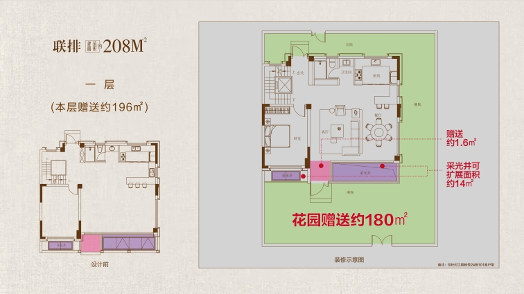 下疊戶型鑒賞: 大空間:高附贈率成就奢闊質(zhì)感 約5.5米地下室:地下一層可隔成雙層空間,打造影音室、健身房或酒窖等功能,實現(xiàn)“買一層得兩層”的空間拓展。 客餐廳挑空:贈送約63m²空間,可改造為套房或親子活動區(qū),立體延伸多重生活場域。 大寬景:有天有地勾勒環(huán)幕視野 庭院與拓展雙加持:首層拓展空間,可規(guī)劃入戶玄關(guān)或休閑區(qū)。最大約80㎡花園贈送,形成“室內(nèi)活動區(qū)+戶外花園”的社交場景閉環(huán)。 開間尺度與視野:南向三開間設(shè)計,約6.5米橫廳連接室外花園,引景入室,實現(xiàn)“庭院-客廳-餐廳”的通透動線。 大格局:縱向分層突破平面想象 上下分層設(shè)計:疊加產(chǎn)品功能分層,安靜不受打擾;地下室、一樓作為活動區(qū),滿足親友宴請、休閑娛樂等功能應(yīng)用;二樓作為獨立起居空間,形成“下層社交、上層宜居”的分層生活。