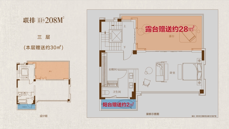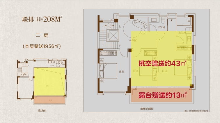 208戶型鑒賞: 大花園:戶均擁有約120㎡以上私屬庭院,可打造花園、茶室或親子活動空間,延伸生活詩意 三開間:約10.7米南向面寬,首層層高約3.6 米,采光通風(fēng)俱佳,營造朗闊起居格局。 高附贈:地下室面積約108㎡,約 5.5 米挑高,可隔成兩層,打造影音室、健身房、酒窖等多元功能區(qū);一層餐客廳挑空,可拓展約43㎡贈送空間;二層、三層配備景觀露臺,陽臺半贈送;四層星空露臺全贈送,解鎖生活多重想象。